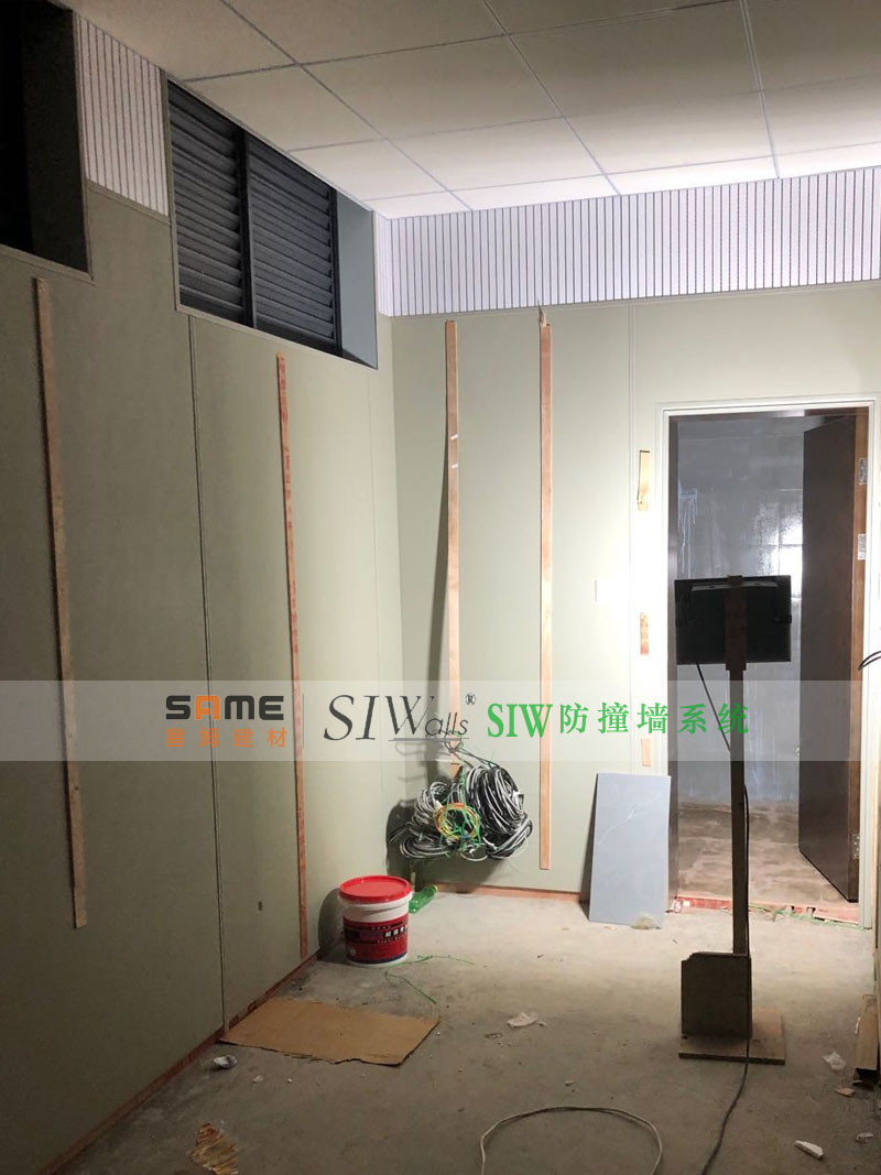 SIW防撞墙系统是星美软包厂家生产墙面、地面、家具、卫浴等室内全部防撞用具的统称,在纪委、监委、、谈话室、留置室、审讯室、询问室、审讯室、辨认室、办案区等经常使用,为确保人员人身安全而制成,主要的SIW防撞墙系统的功能属性需要覆盖阻燃、防撞、防水、环保、保温、隔热、隔音、等等多功能,厚度等都需要大于20mm以上。总结安装步骤为:安装方法:在墙面安装木工板→划线定位→安装收边条底座→安装防撞软包→安装收边条。